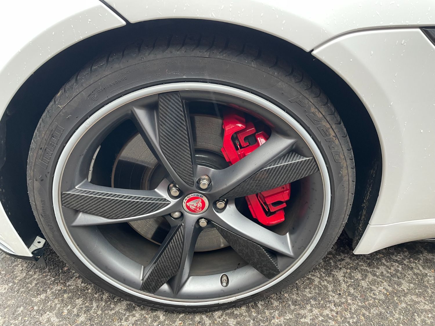 Fuji White With Grained Leather/SuedeCloth Upholstery, 20" 5 spoke Forged Carbon Fibre and Satin Dark Grey Diamond Turned finish, Panoramic Glass Roof, Satellite Navigation, Body Colour Fixed Rear Spoiler, Red Seat Belts, Red Brake Callipers, Black Exterior Pack, Black Side Sills, Meridien Sound System ,Bright Metal Foot Pedals, Electric Heated Front Seats, Privacy Glass, Front Parking Aid, Reversing Camera, Heated Front Windscreen, Adaptive Dynamics, Blue Ambient Lighting, 3 Spoke Leather Steering Wheel, ONE OWNER FROM NEW ONLY 4,000 MILES WITH FULL JAGUAR SERVICE HISTORY.